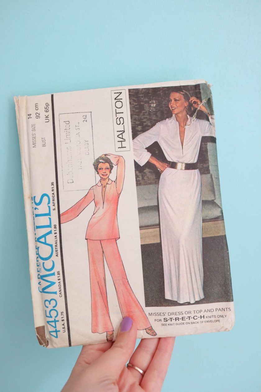 Between the early 1970s and early 1980s, Halston released over 100 patterns with McCall’s and another handful of hat designs with Vogue. They celebrated his trademark easy slinky style and many featured mini collections of garments that could be worn together or separately. He also came up with unique pattern pieces to avoid unnecessary seams and using bias layplans to create the drape he loved in his fashion line. Halston licensed his millinery designs with Vogue Patterns during his time as Chief Milliner at Bergdorf Goodman. At the amazing Vintage Pattern Fandom site you can see photos of the patterns in case you’re lucky enough to find one for yourself! It does happen… I found M4453 at a car boot sale in Yorkshire of all places.