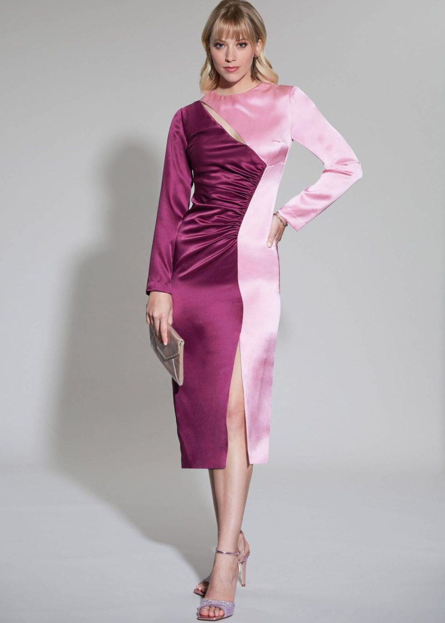 Luke’s pink velvet dress had ruching and a neckline cutout like M8341.
