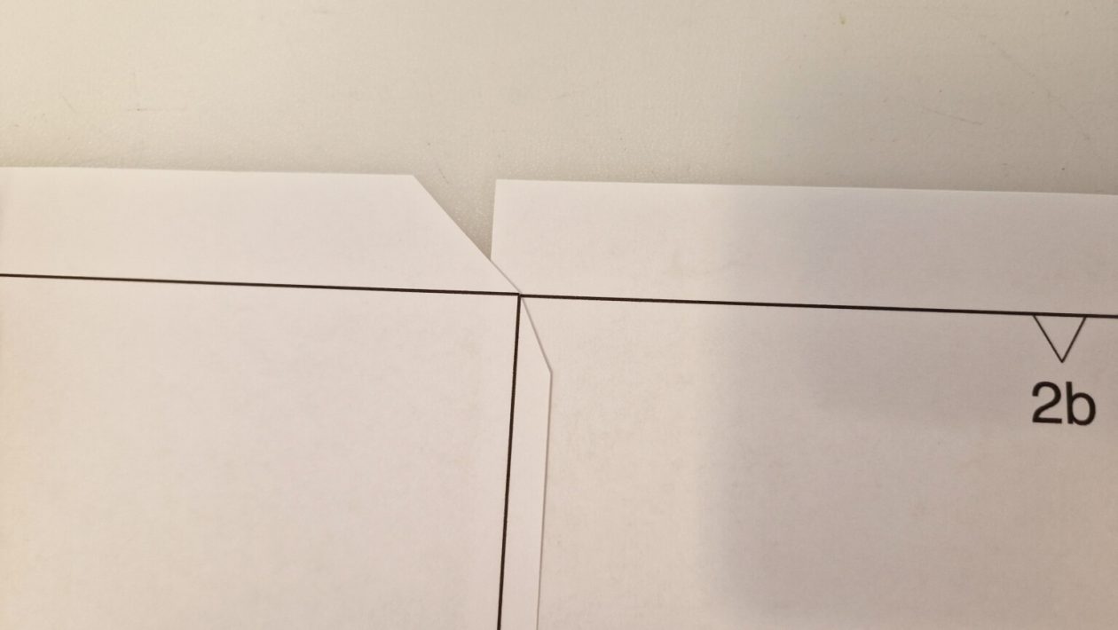 You can now overlap the tiles as you did before but focus on matching the corners of the box at the top and bottom.