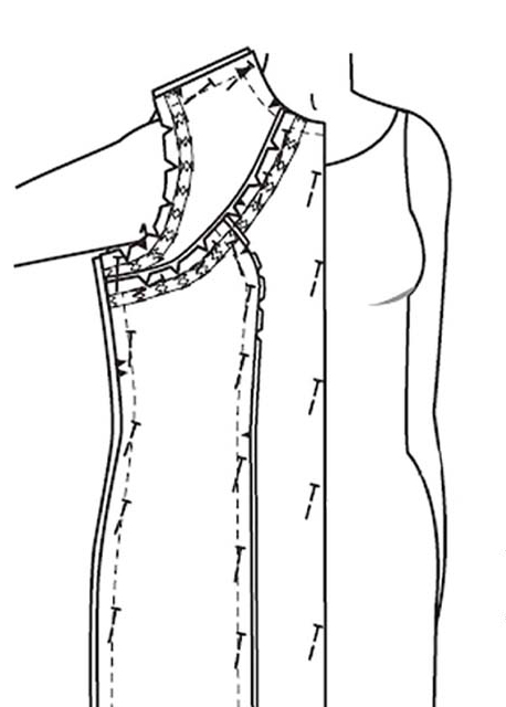 The example shown is for a princess seam dress with a yoke so you can see the maximum amount of taping required. Garments with fewer design lines will be easy to prepare.