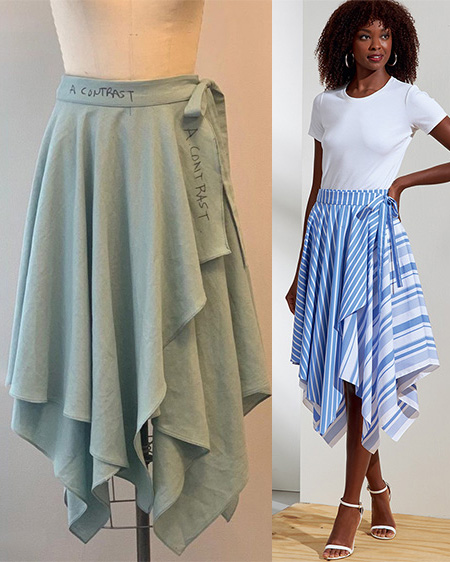For trousers and skirts only make your toile as long as your hips to identify the fit around the waist and hips without wasting fabric on the full length. For gathered or voluminous designs with lots of ease you can choose to skip this stage if you’re comfortable with the loose fit at the hips.