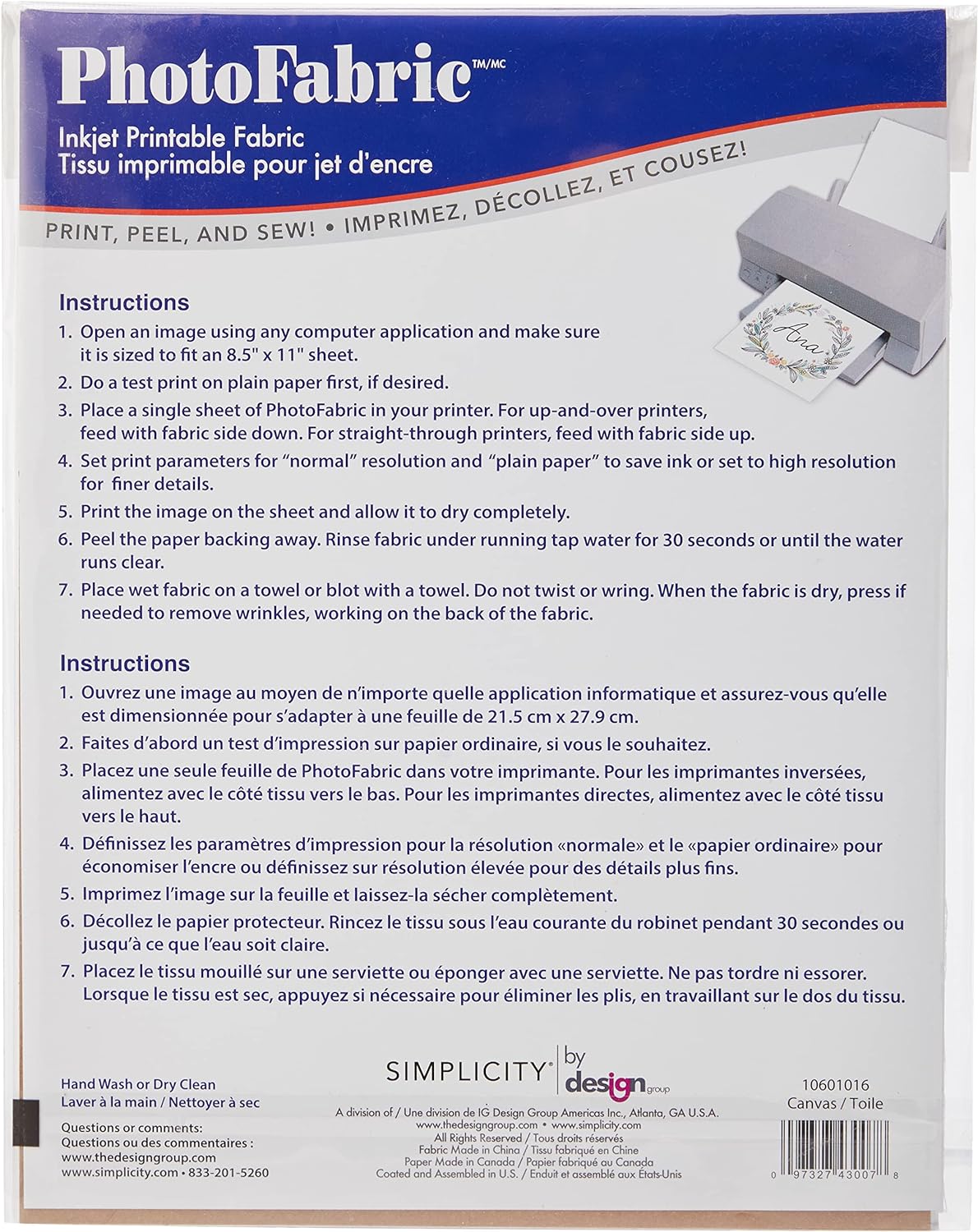 Photofabric 100% Cotton Crafter’s Canvas 21.6cm x 27.9cm