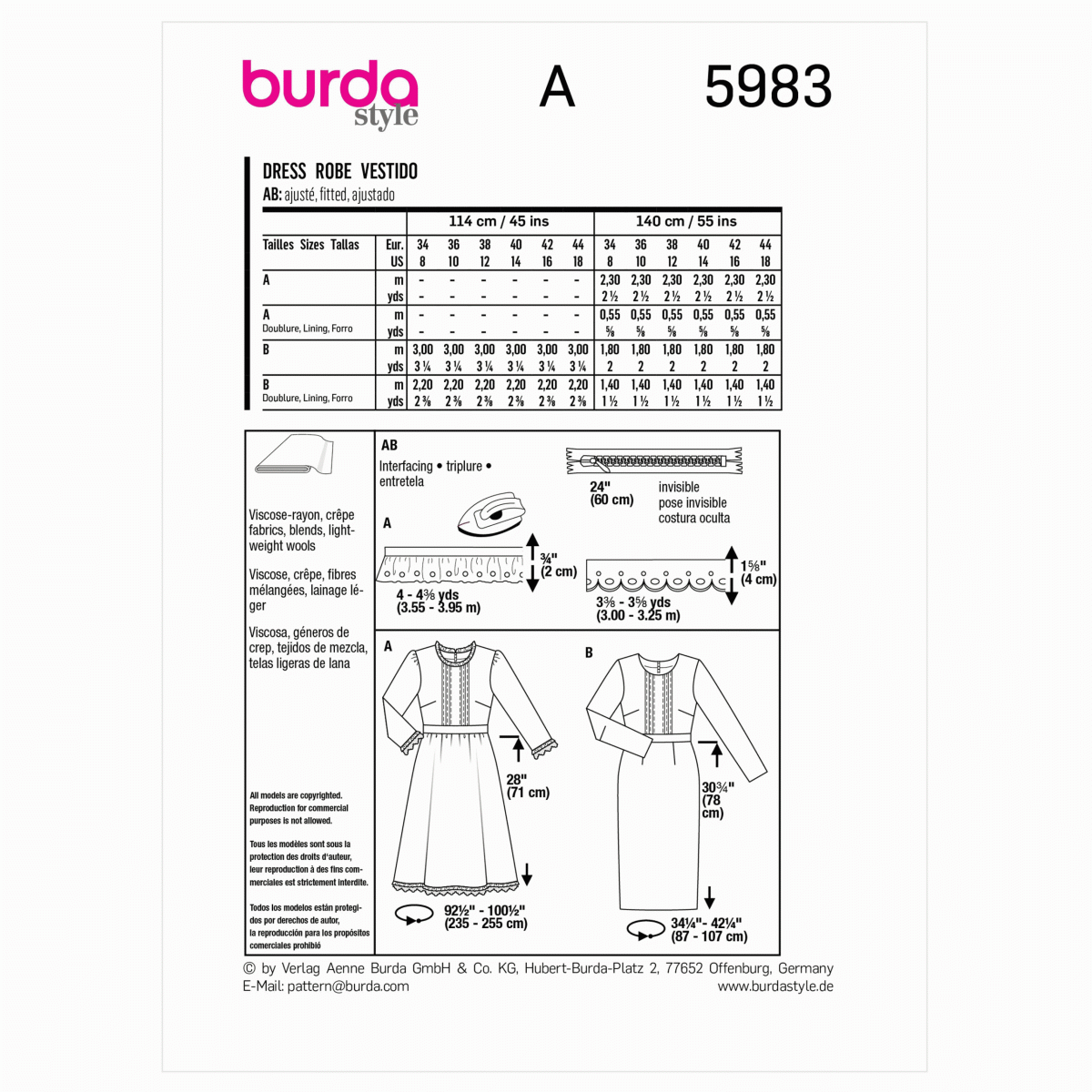 Burda Style Pattern B5983 Misses’ Dresses