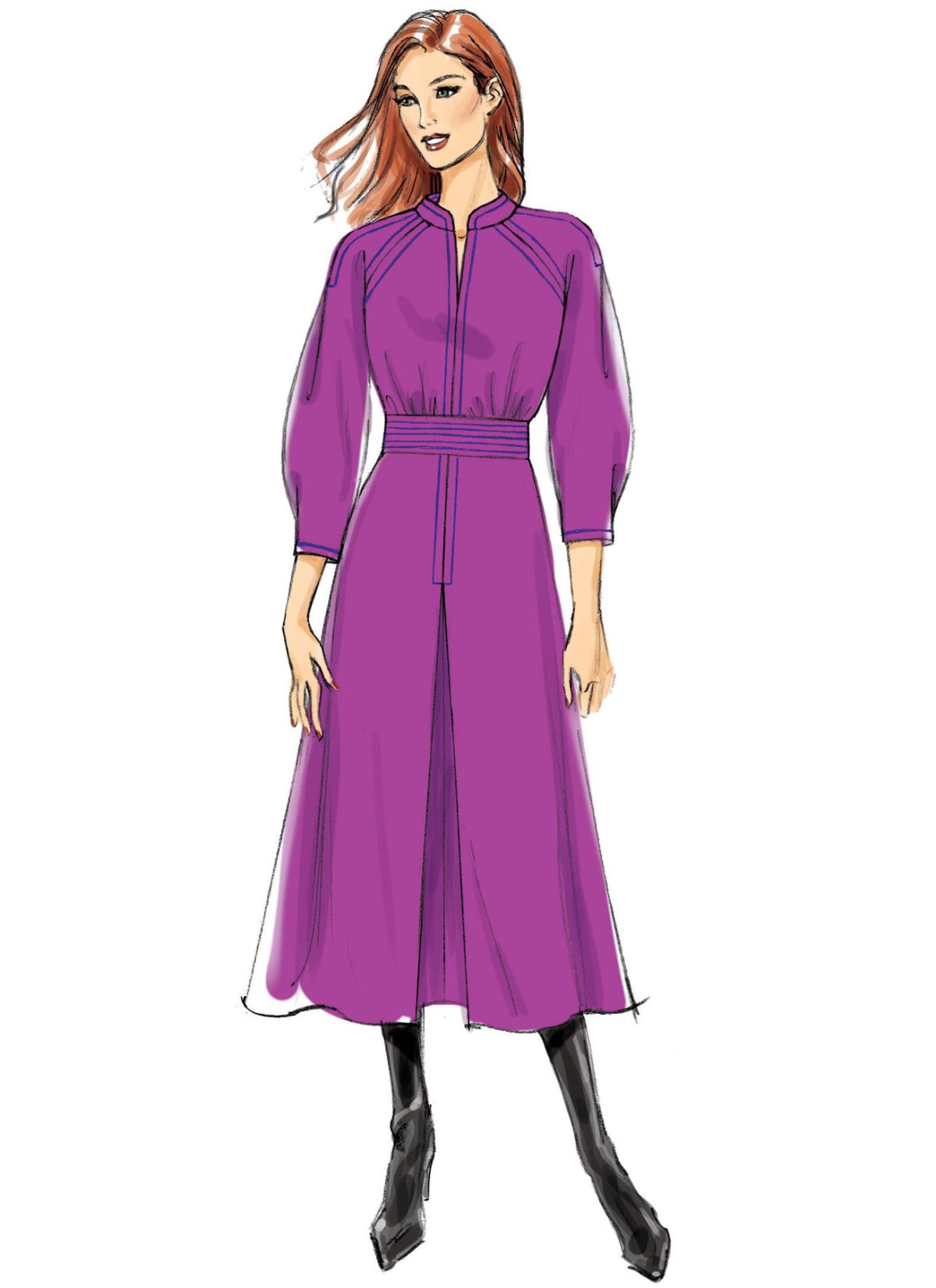 Butterick Sewing Pattern B6482 Misses’ Raglan Sleeve Dress with Contrast Topstitching by Lisette