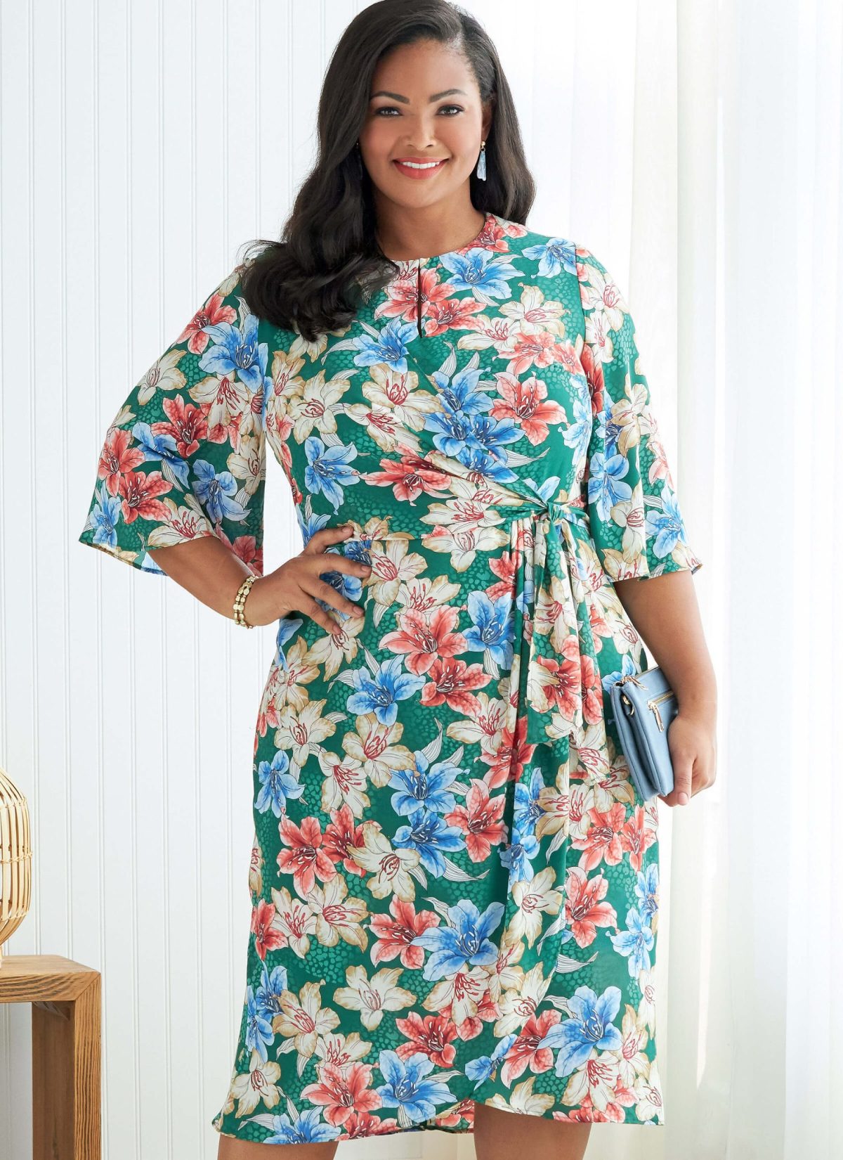 Women’s faux wrap dress & jumpsuit with sleeve variations. Sewing Skill: Easy.