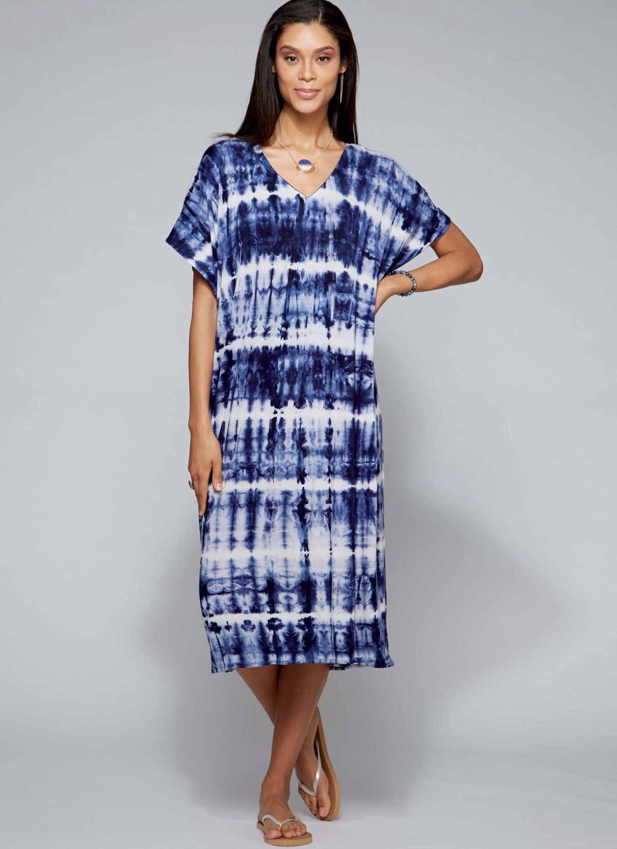 Very loose-fitting pullover tunic & dresses have shoulder & length variations. Sewing Skill: Average.