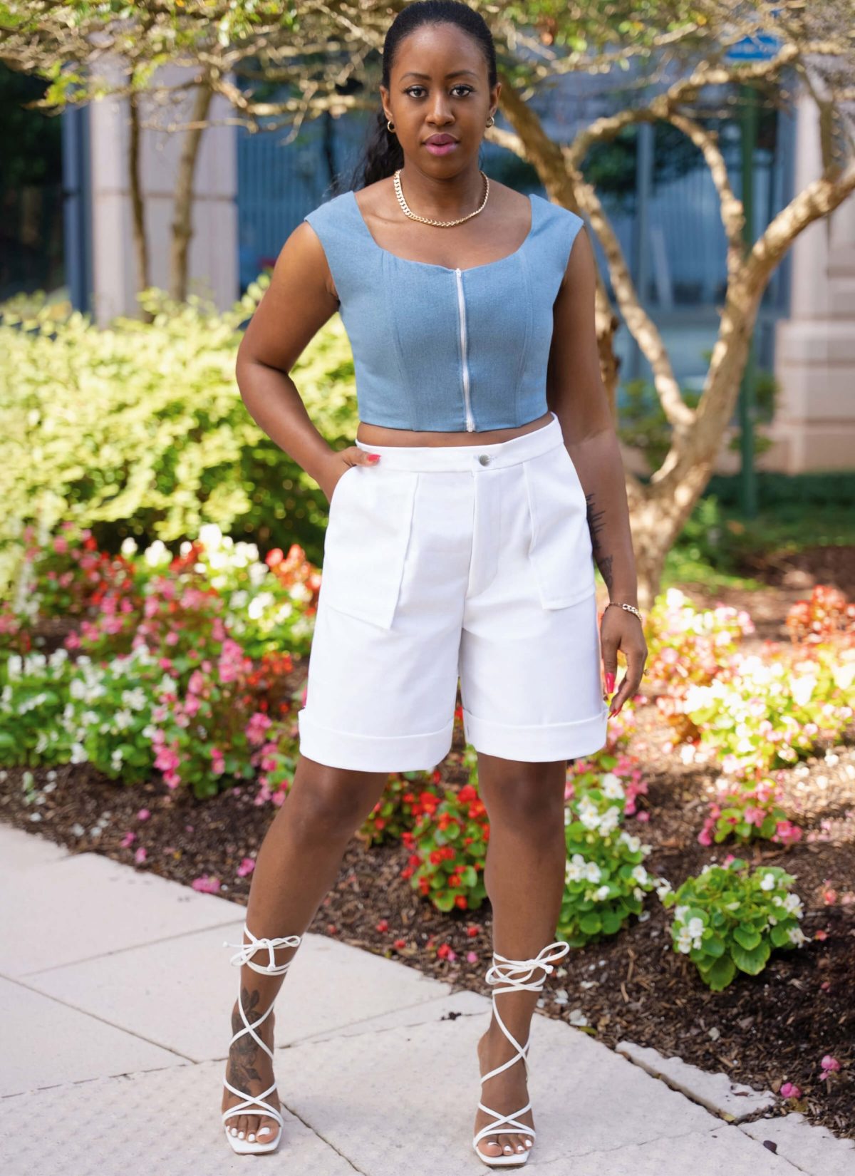 Sew Along to the new Know Me ME2014 View C with Duana in this step-by-step video. Bermuda shorts have folded cuff, fly front zipper and pockets with topstitching.