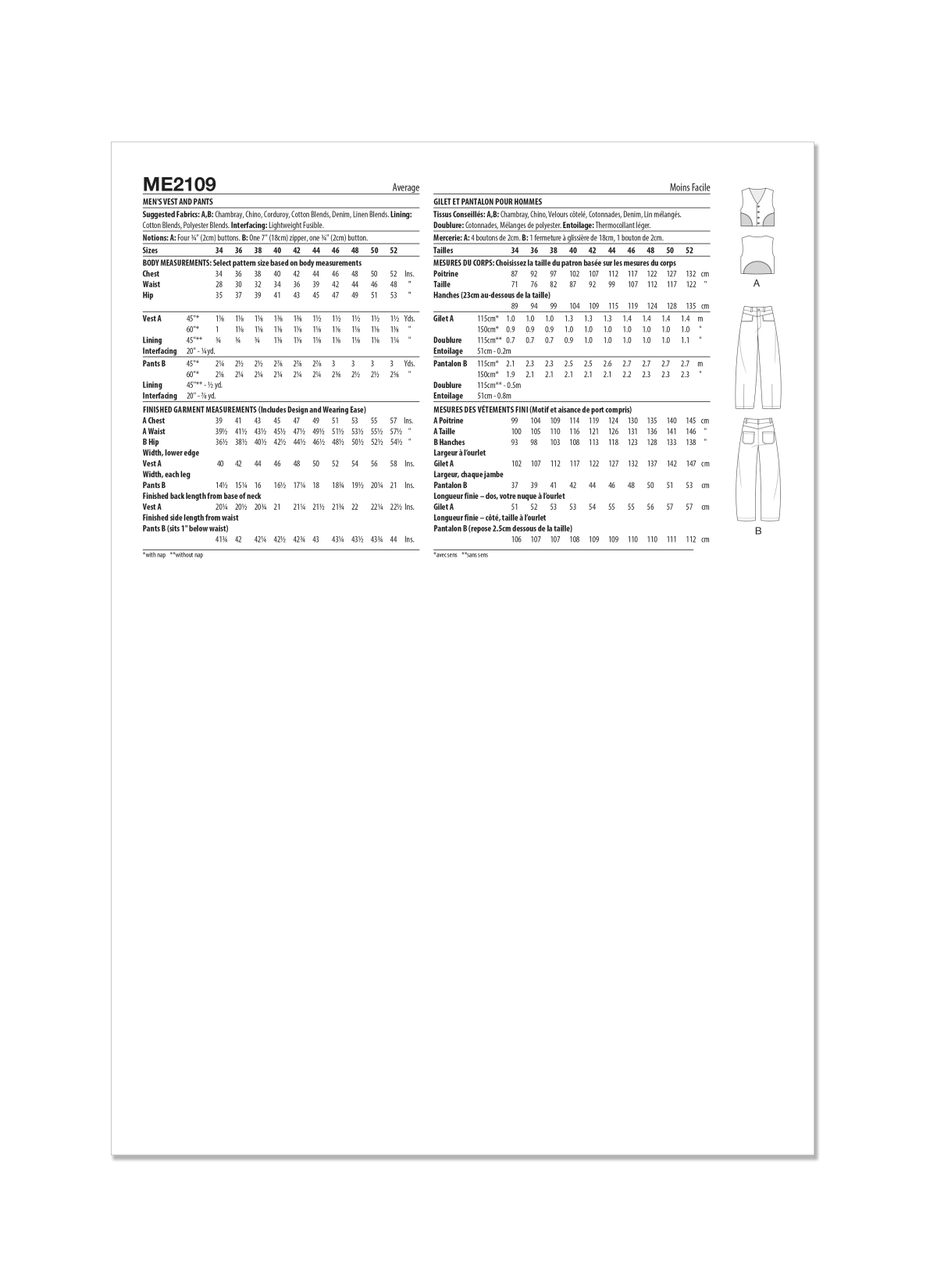 Sew Along to the new Know Me ME2109 with Brandon (@happilydressed) in this step-by-step video. This Mens pattern features a lined vest pattern features front button closure and panels at the sides and back. Barrel leg shaped pants have waistband with belt loops, front and back yoke, pockets, front leg darts and fly front zipper with button closure