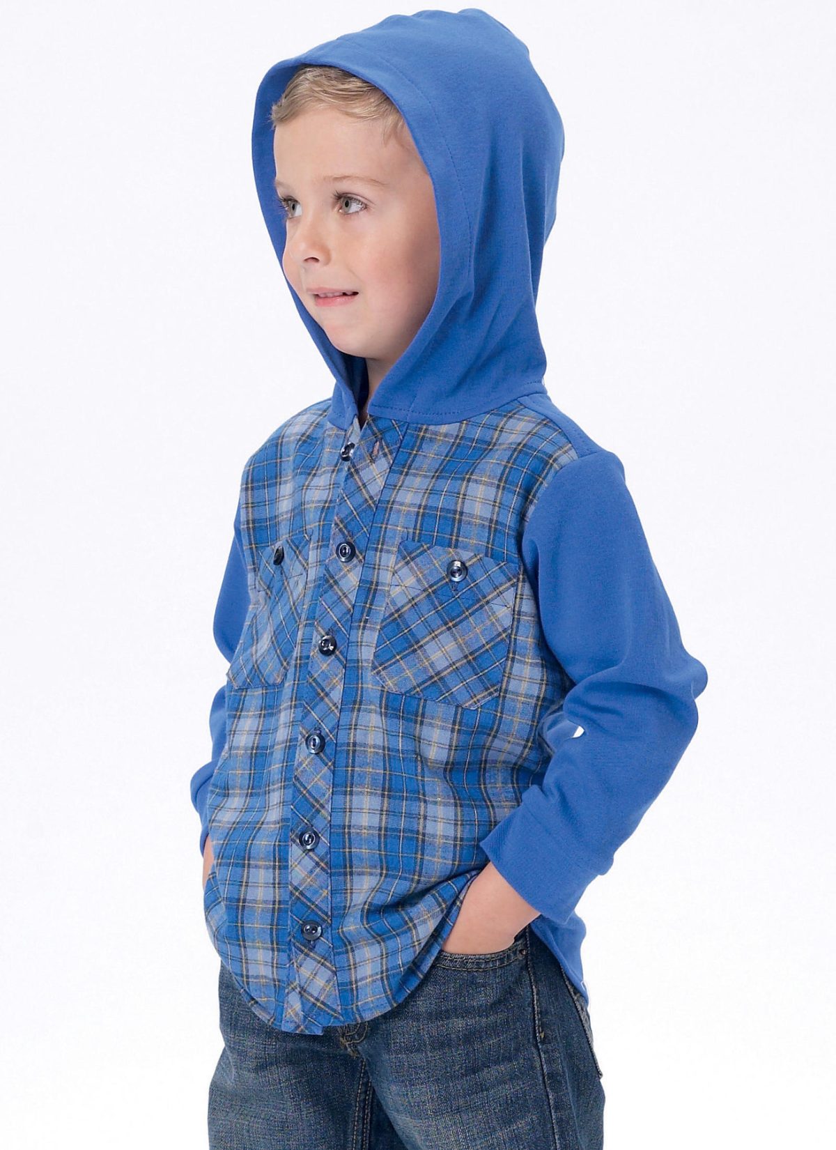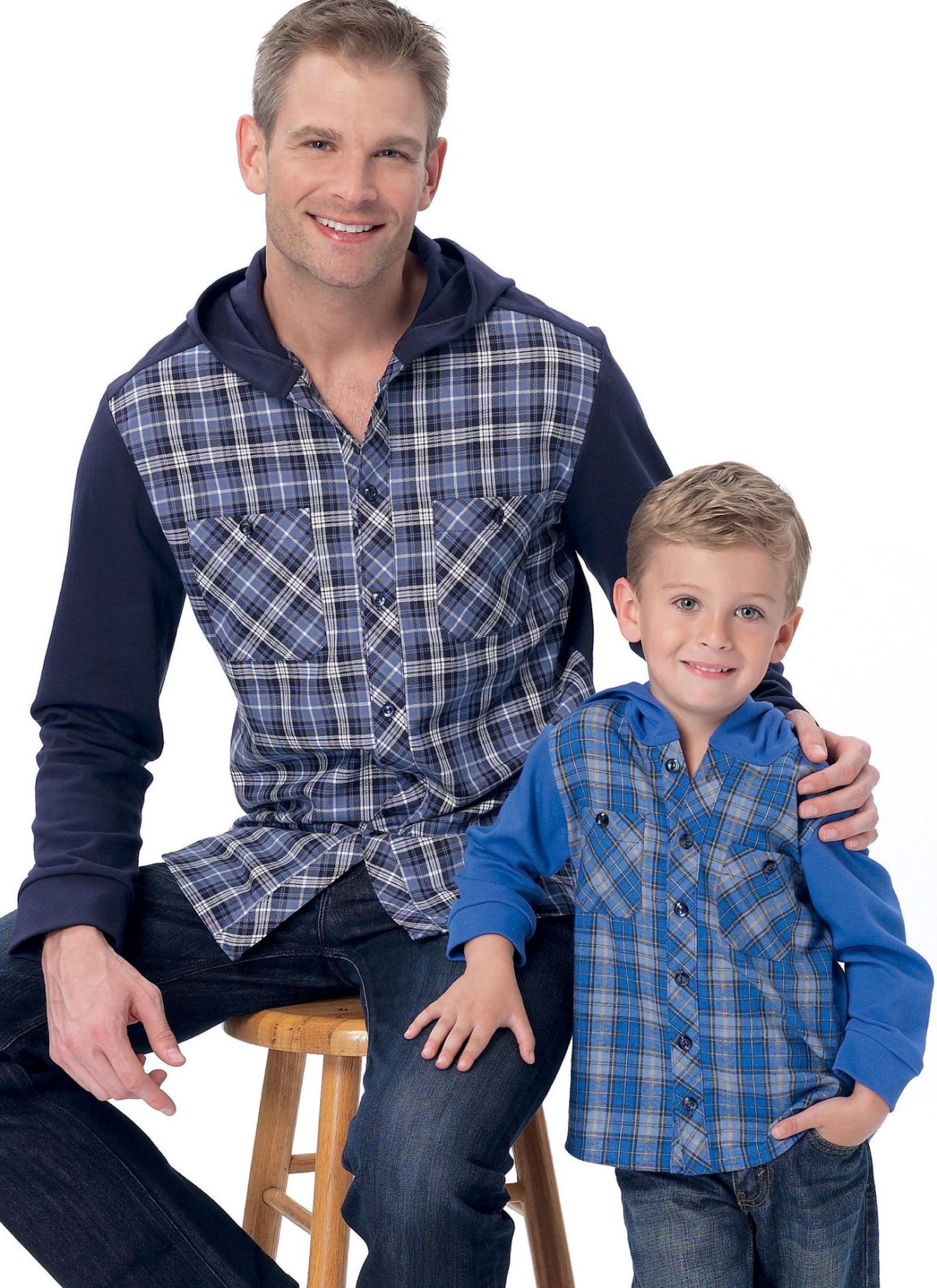 McCall’s Sewing Pattern M7447 Men’s/Boys’ Button-Down Shirts with Hood or Collar