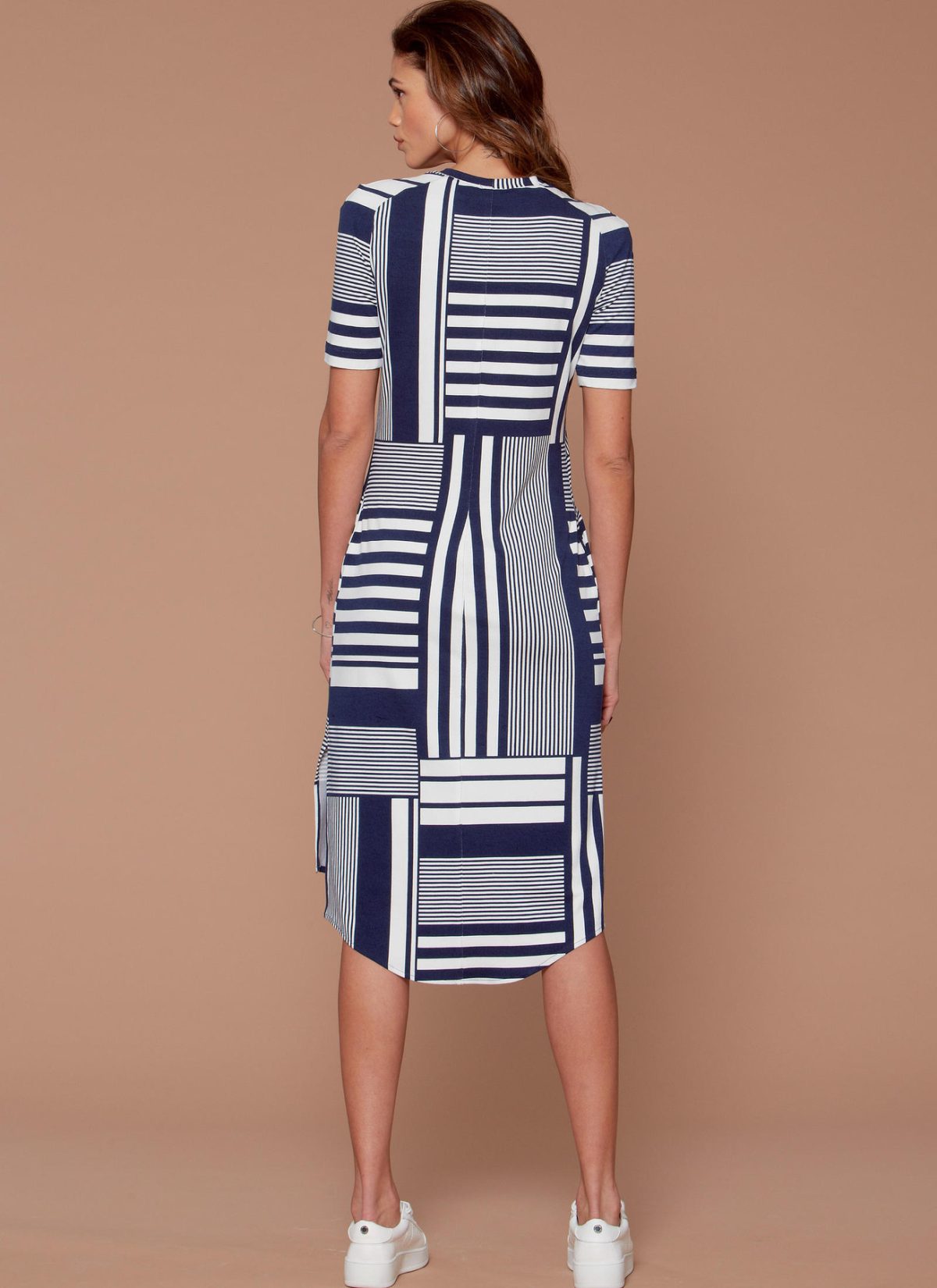 Close-fitting pullover tops, tunic and dress have raglan sleeves, sleeve and length variations. D: Uneven hem, wrong side of fabric will show.