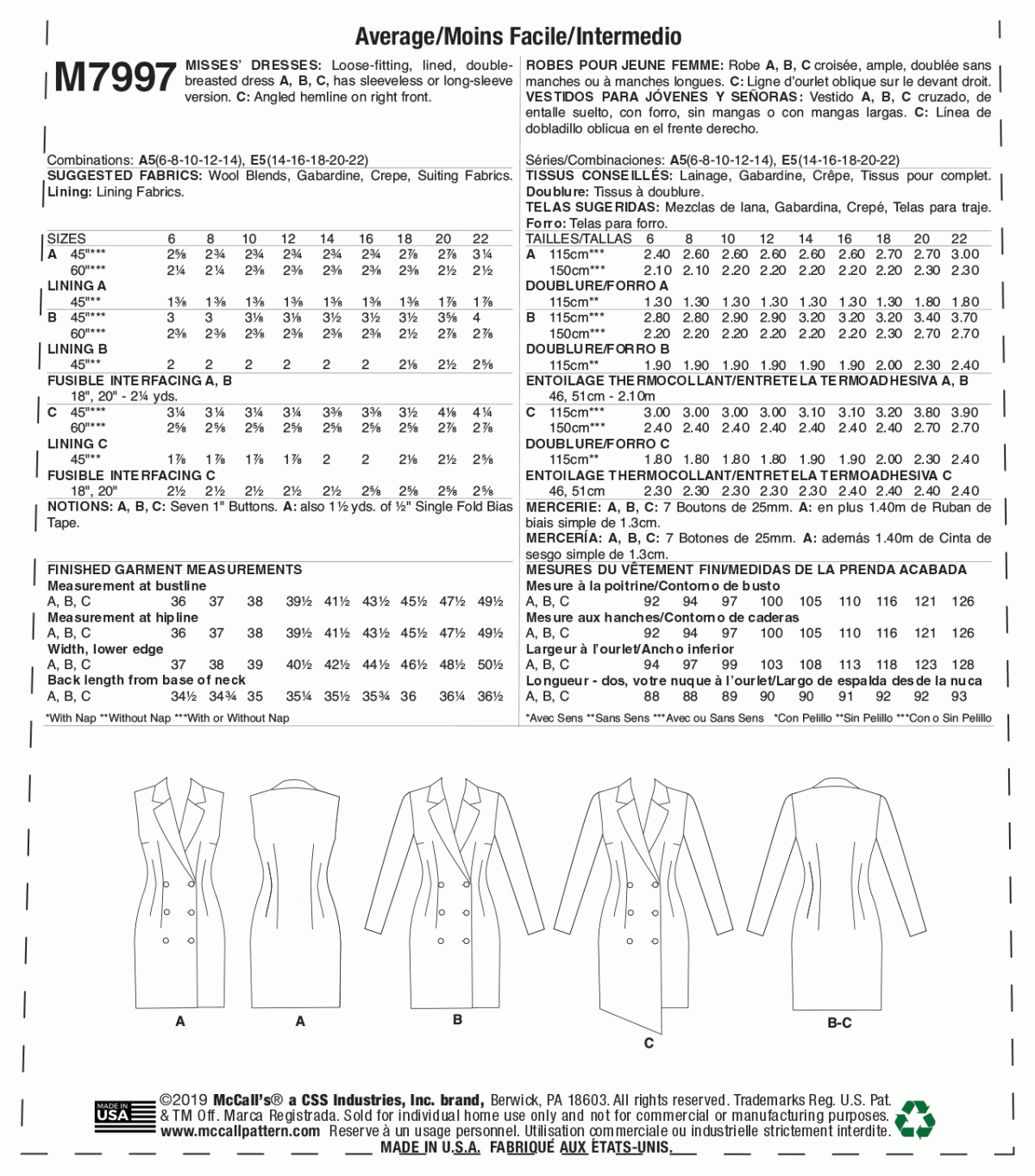 McCall’s Sewing Pattern M7997 Misses’ Dresses