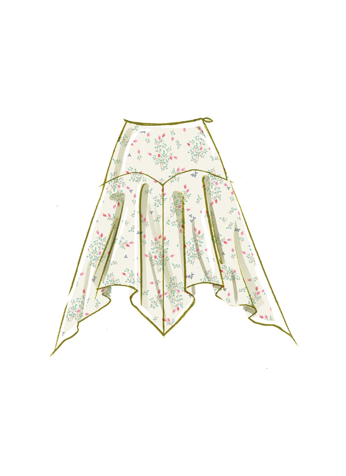 Maxi length Skirt in two lengths has yoke on bias, seaming details, baby hem, invisible zipper closure and option for colour blocking. View B has elastic button looping closure and train. Sew Rating: Average.