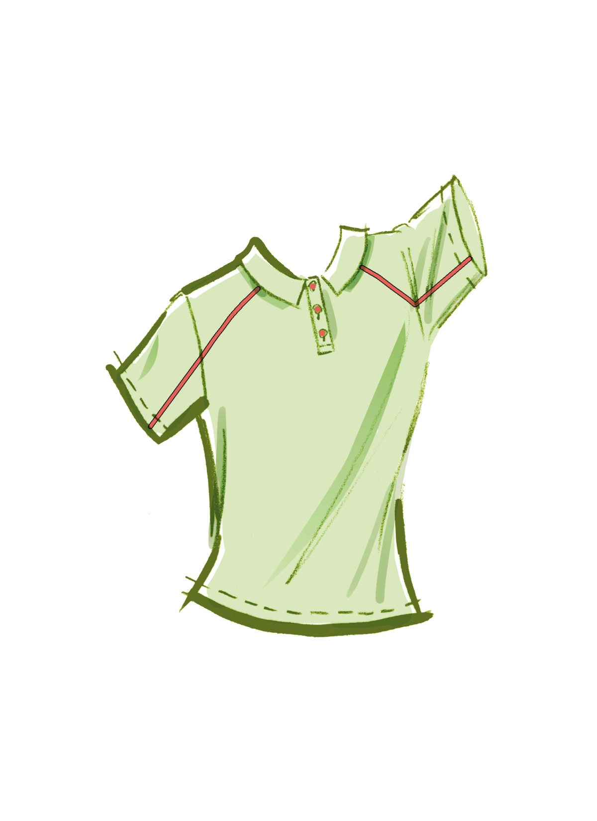 Stylish racquet or tennis ensemble. Polo tops have three-button placket, collar, optional contrast and purchased stretch piping or trim. Skorts with elastic waistband have purchased stretch piping or contrast at the bands. For the coordinating Men’s pattern, check out M8485