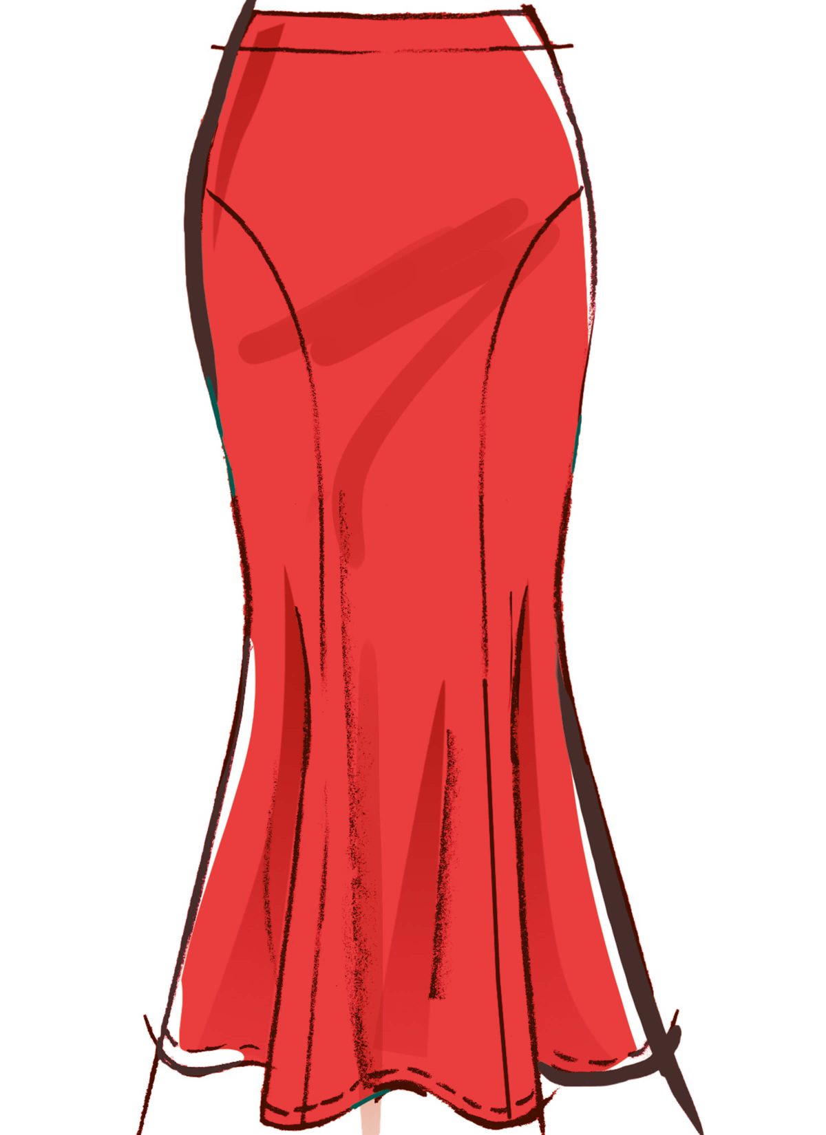 Sew Along with Nefertiti to the new McCall's M8558 View C in this step-by-step video. This Misses pattern features a pull-on skirt patterns, close fitting, sit 1" below waist, have shaped side front and side back seams, and narrow hems. View A is a mini skirt. Views B and C have trumpet hem.