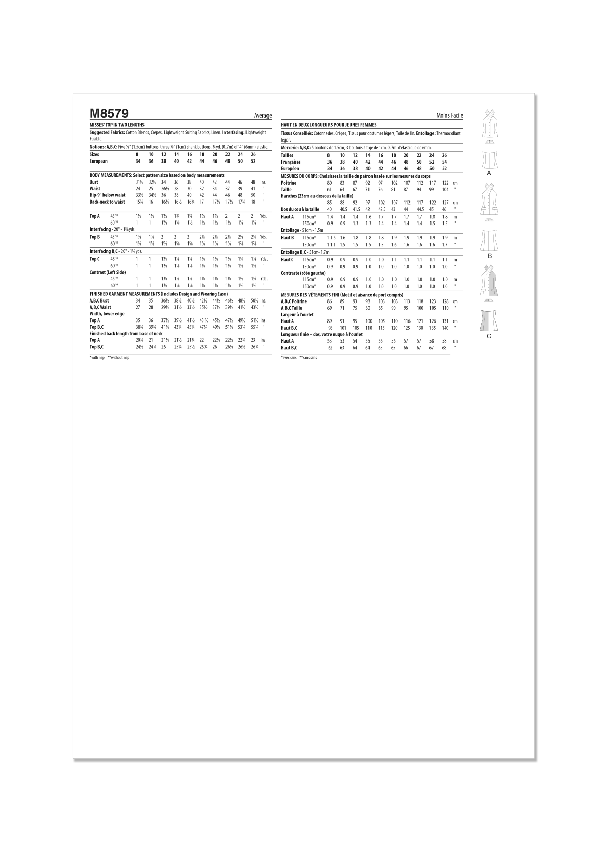Our pattern sizing varies slightly between brands. Also it’s worth saying that pattern sizes aren’t the same as ready-to-wear sizing! Take your body measurements before choosing which size to make up using the bust, hip and waist measurements printed on each pattern envelope and the finished garment measurements. For more information on this topic visit our size and fit guides section of the website. Here we show you how to measure yourself and pick the right pattern size.