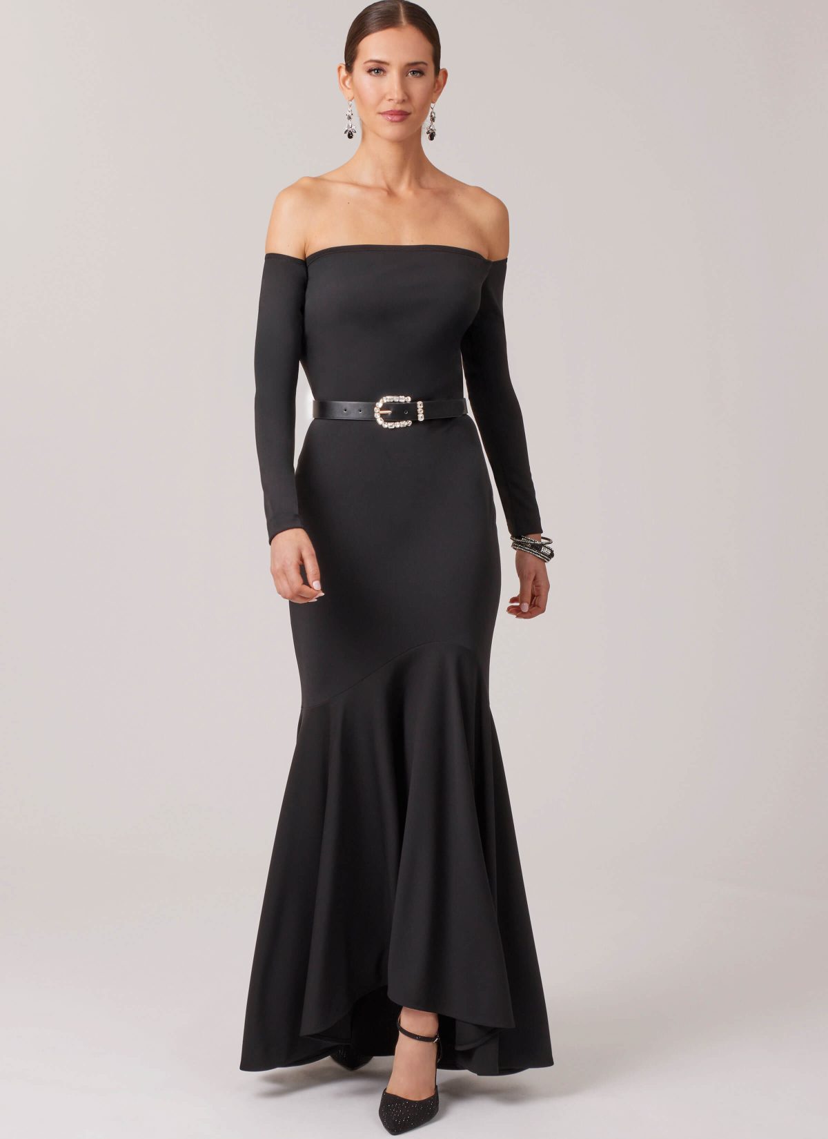 Sew Along with Mimi to the new McCall's M8605 in this step-by-step video. This Misses pattern features a close-fitting, off-the-shoulder trumpet dress pattern has underlined bodice, invisible back zipper, long sleeves and length variations.