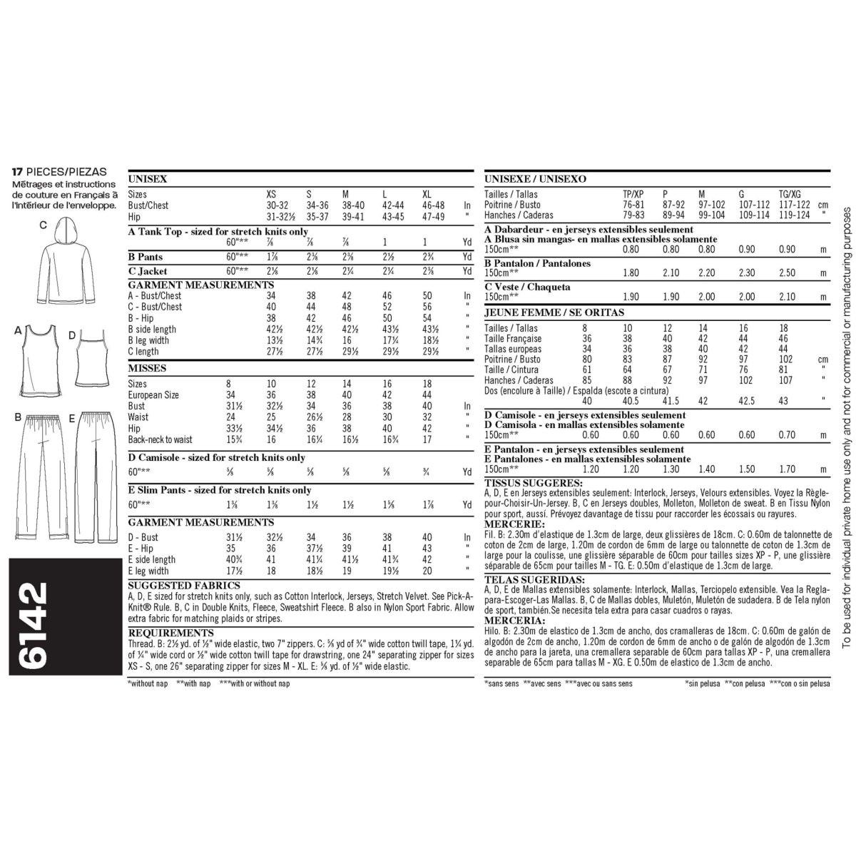 A, D, E sized for stretch knits only, such as Cotton Interlock, Jerseys, Stretch Velvet,. See Pick-A-Kint Rule, B, C, in Double Knits, Fleece, Sweatshirt Fleece. B, also in Nylon Sport Fabric. Allow extra fabric for matching plaids or stripes.