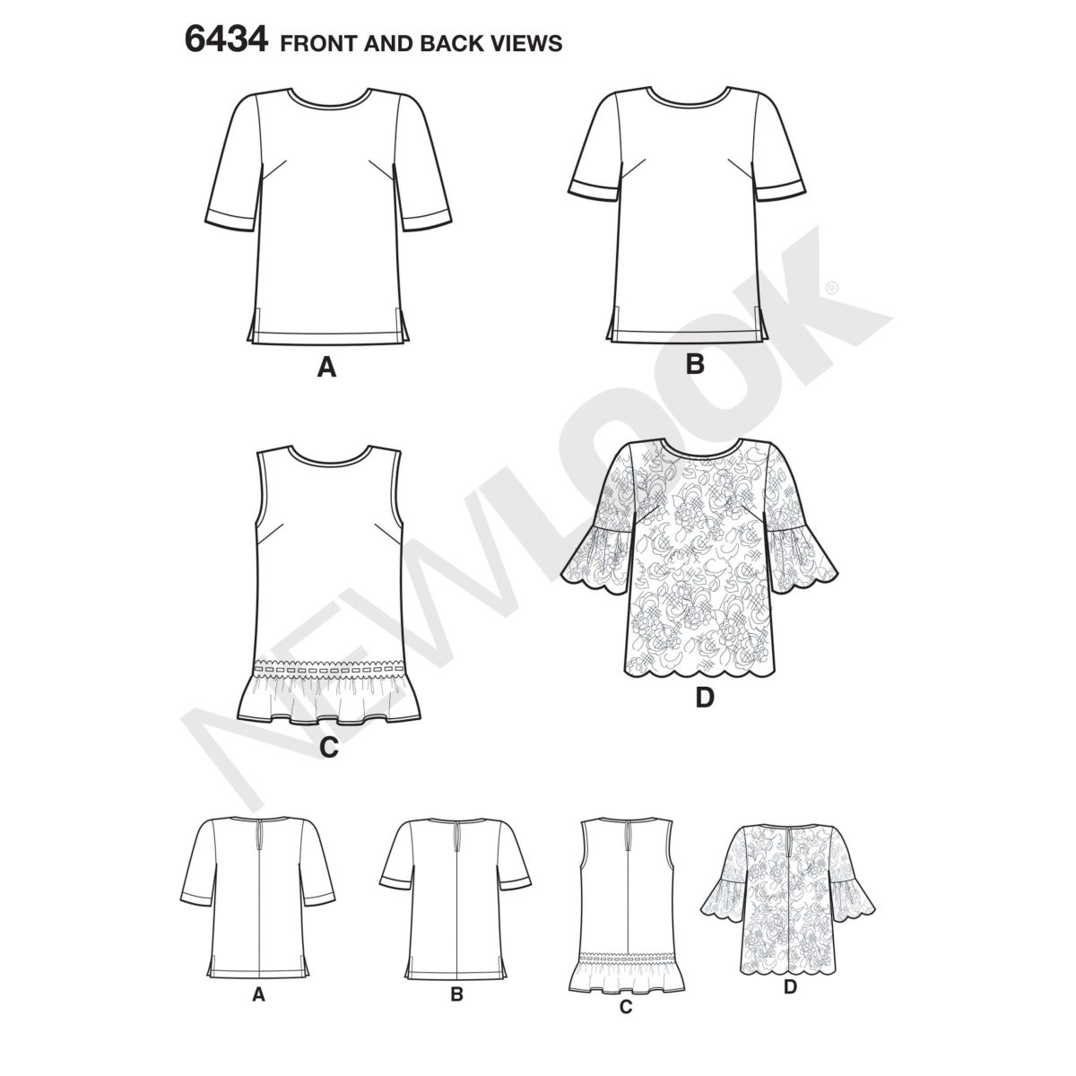 New Look Sewing Pattern N6434 Misses’ Tops with Fabric Variations