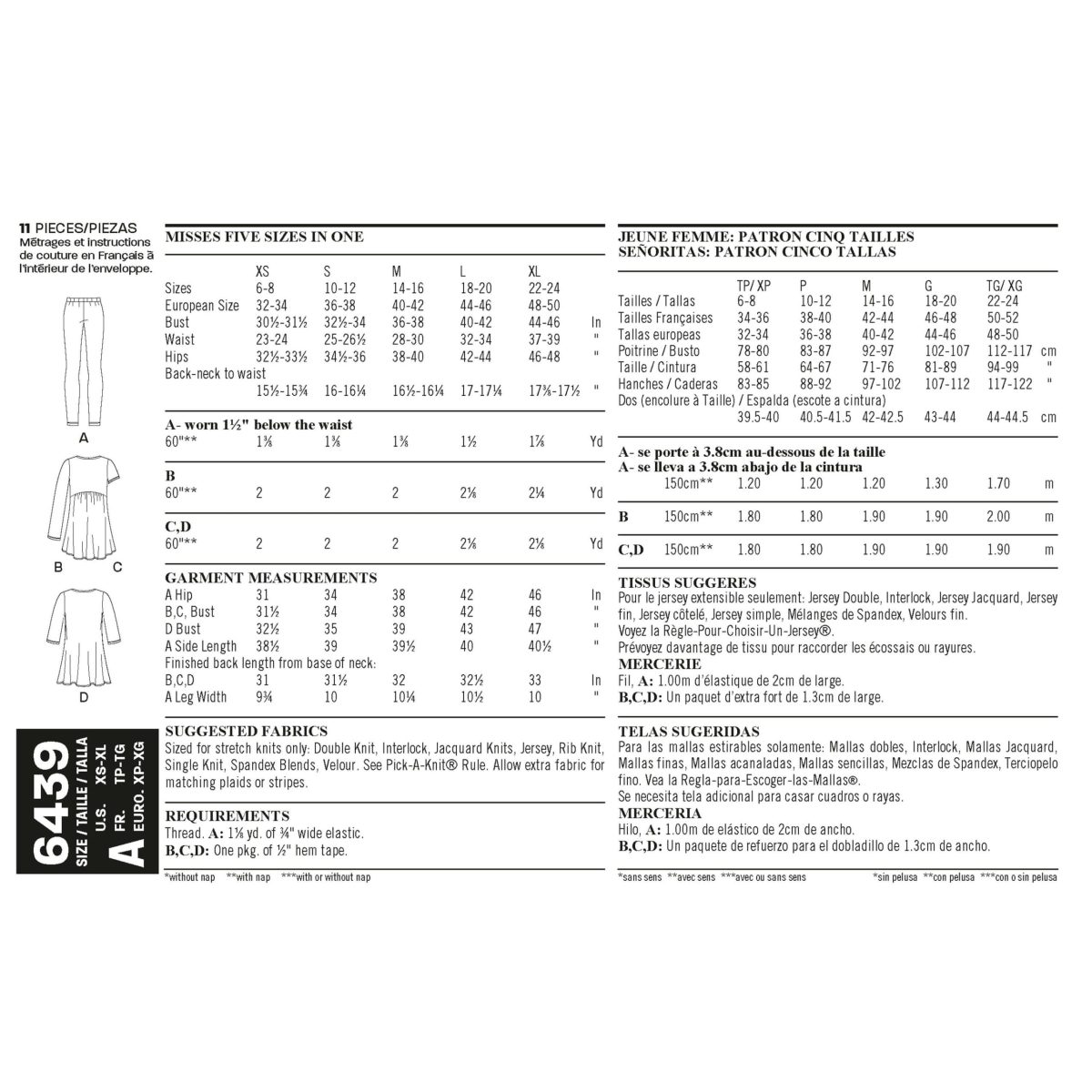 Sized for stretch knits only: Double Knit, Interlock, Jacquard Knits, Jersey Rib Knit, Single Knit, Spandex Blends, Velour. See Pick-A-Knit Rule.