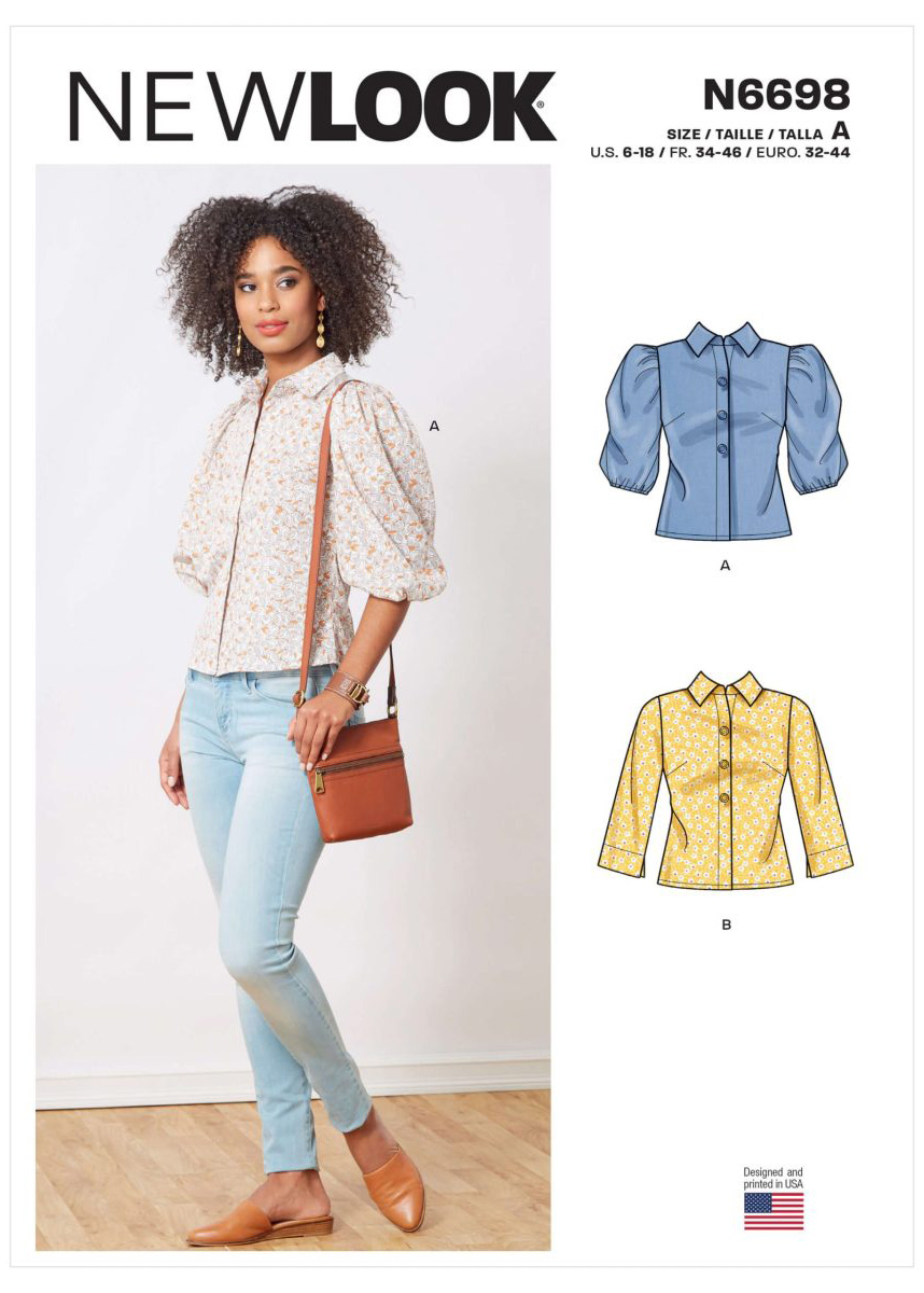 Misses’ tops with puff or straight sleeves. Front blouse can be worn down or tied in front. Bust and back waist darts.