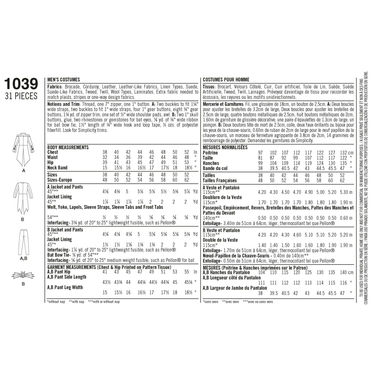 These great costumes for men are perfect for your next cosplay event, costume party, steampunk or comic book convention. Pattern includes jacket in two styles and trousers with fly front opening. Arkivestry for Simplicity.