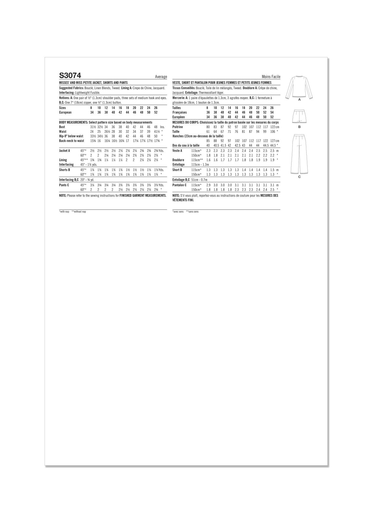 Simplicity Sewing Pattern S3074 Misses’ and Miss Petite Jacket, Shorts and Trousers
