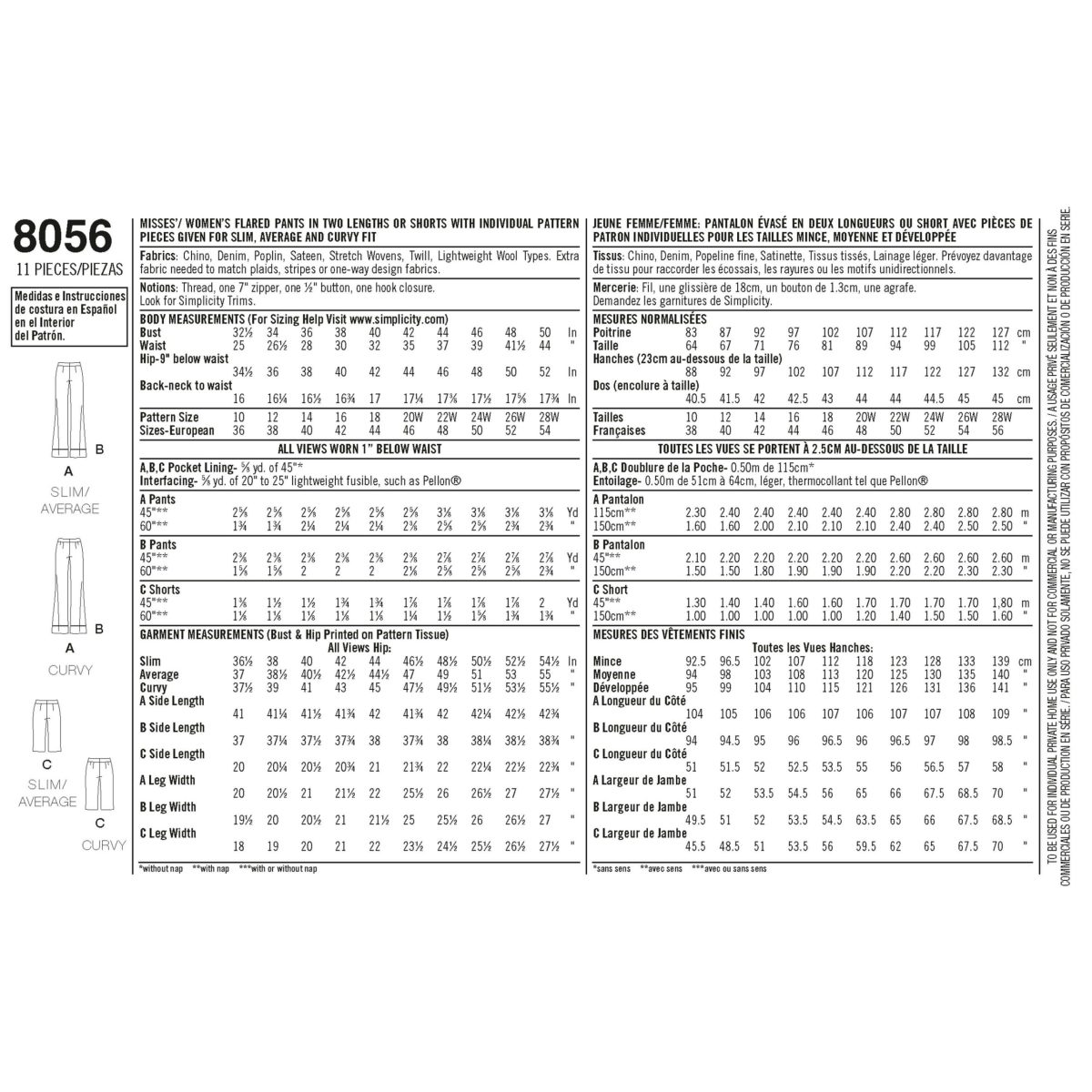 Simplicity Sewing Pattern 8056 Amazing Fit Miss and Plus Size Flared Trousers or Shorts