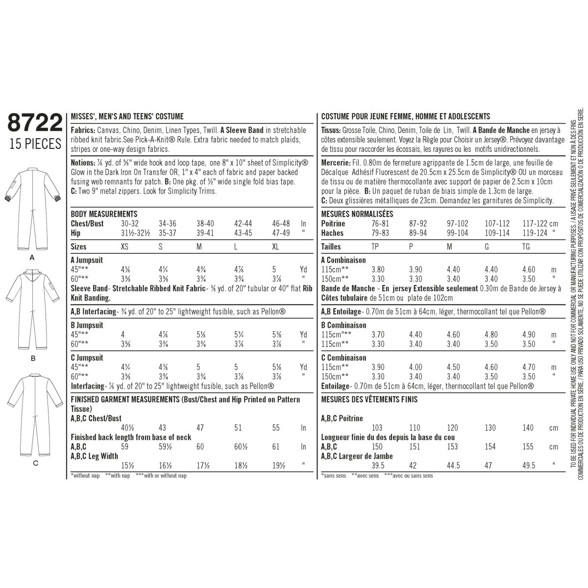 Simplicity Sewing Pattern 8722 Women’s, Men’s and Teens’ Costume