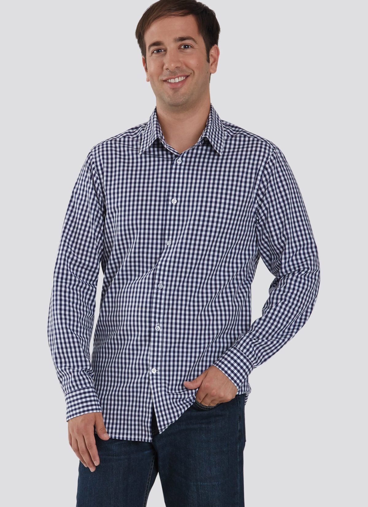 CLASSIC FIT- The classic fit offers you a traditionally cut shirt that is relaxed through your chest and shoulders. Collar stays add crispness for a professional look that will carry you from the breakfast meeting to the board meeting at the end of the day. Put your company ID card or cash clip into your pocket and you’re set to go.