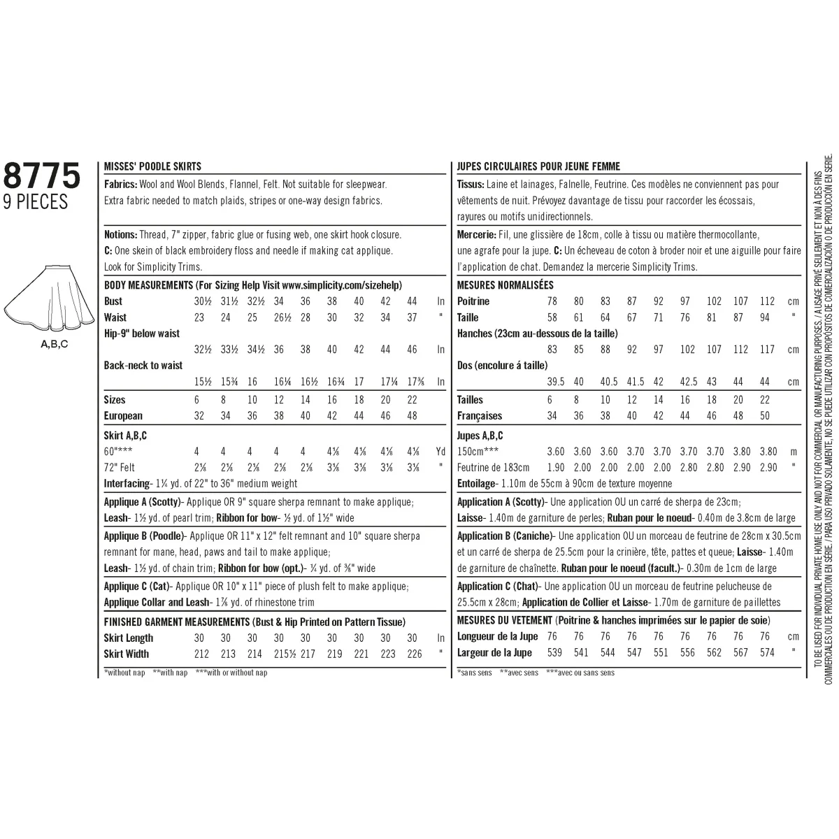 Hit the 50’s theme bash and twirl all night long in these cute rockabilly poodle skirts. Personalise it with one of Simplicity’s dog or cat appliques. Felt and wool felt are suggested fabrics. Simplicity sewing pattern.