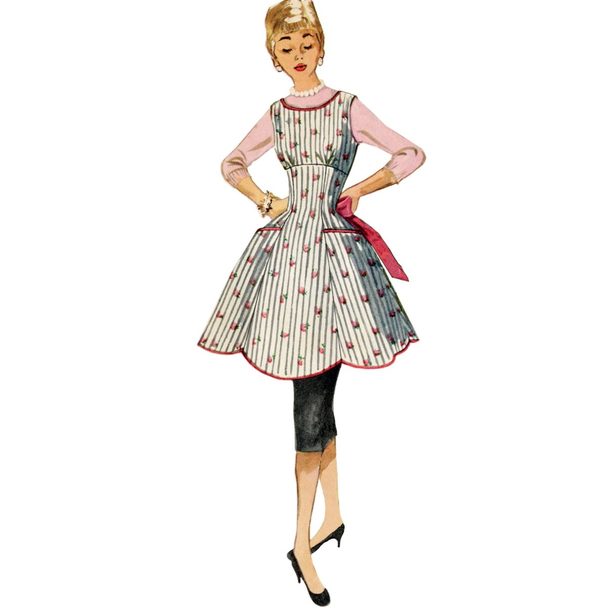 Charming aprons direct from the simplicity archives have irresistable 1950’s style. A, B have shaped hems & cleverly inset pockets. C, D have circular skirts with scalloped hems & pretty lace or ribbon rose trim. Misses’ sizes S-M-L.