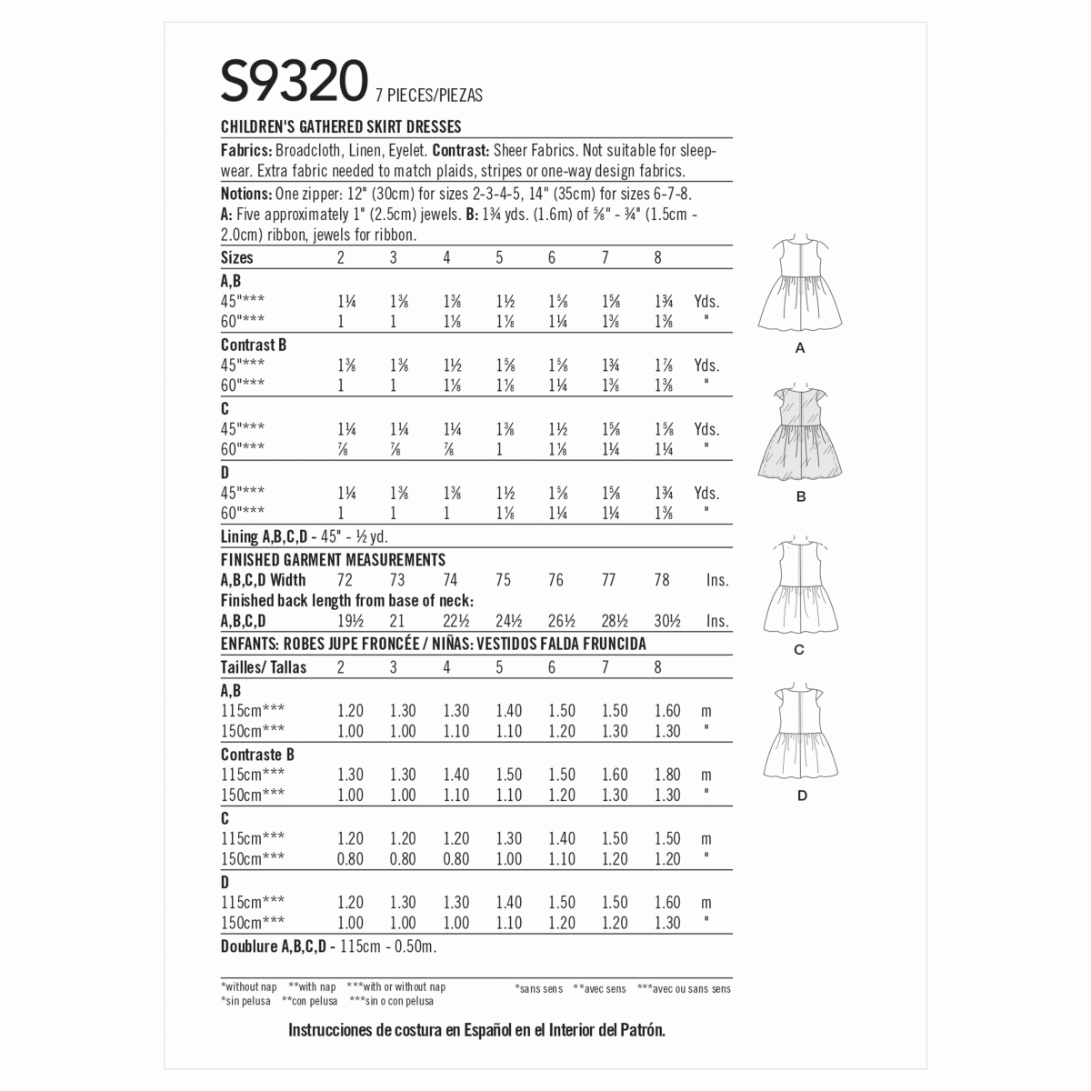 Simplicity Sewing Pattern S9320 Children’s Dresses with gathered skirts