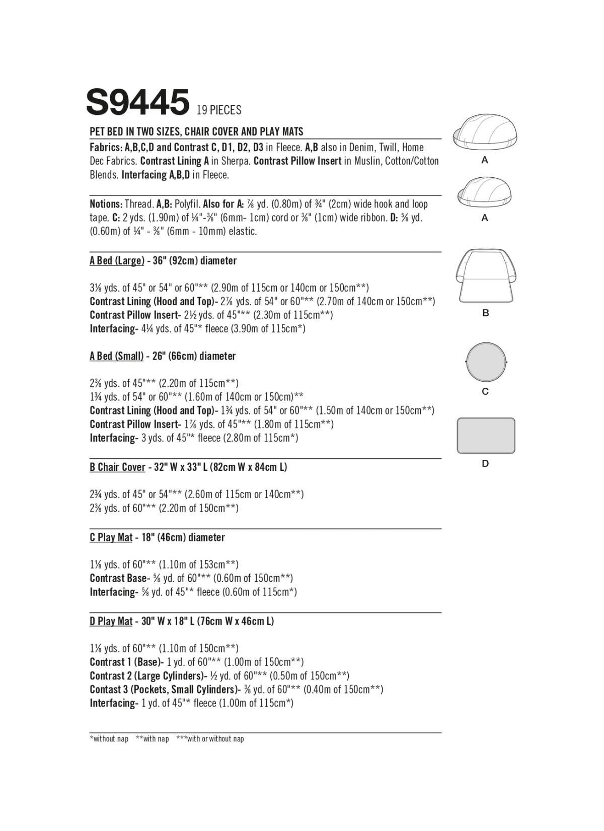 A,B,C,D CONTRAST: C, D1, D2, D3: FLEECE ALSO A,B: DENIM, TWILL, HOME DEC FABRICS. CONTRAST LINING A: SHERPA CONTRAST 1A: MUSLIN, COTTON/COTTON BLENDS. INTERFACING A,B,D: FLEECE