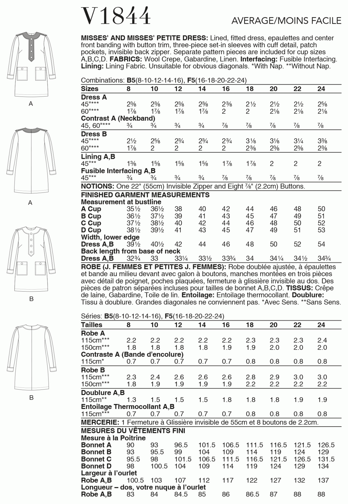 With a roster of internationally acclaimed designers including Rachel Comey, Diane von Furstenberg and Marcy Tilton. Vogue Patterns is the leading source of licensed couture patterns with new designs added each season. All Vogue Patterns show a sewing skill rating and we have a range of Custom Fit cup size designs.