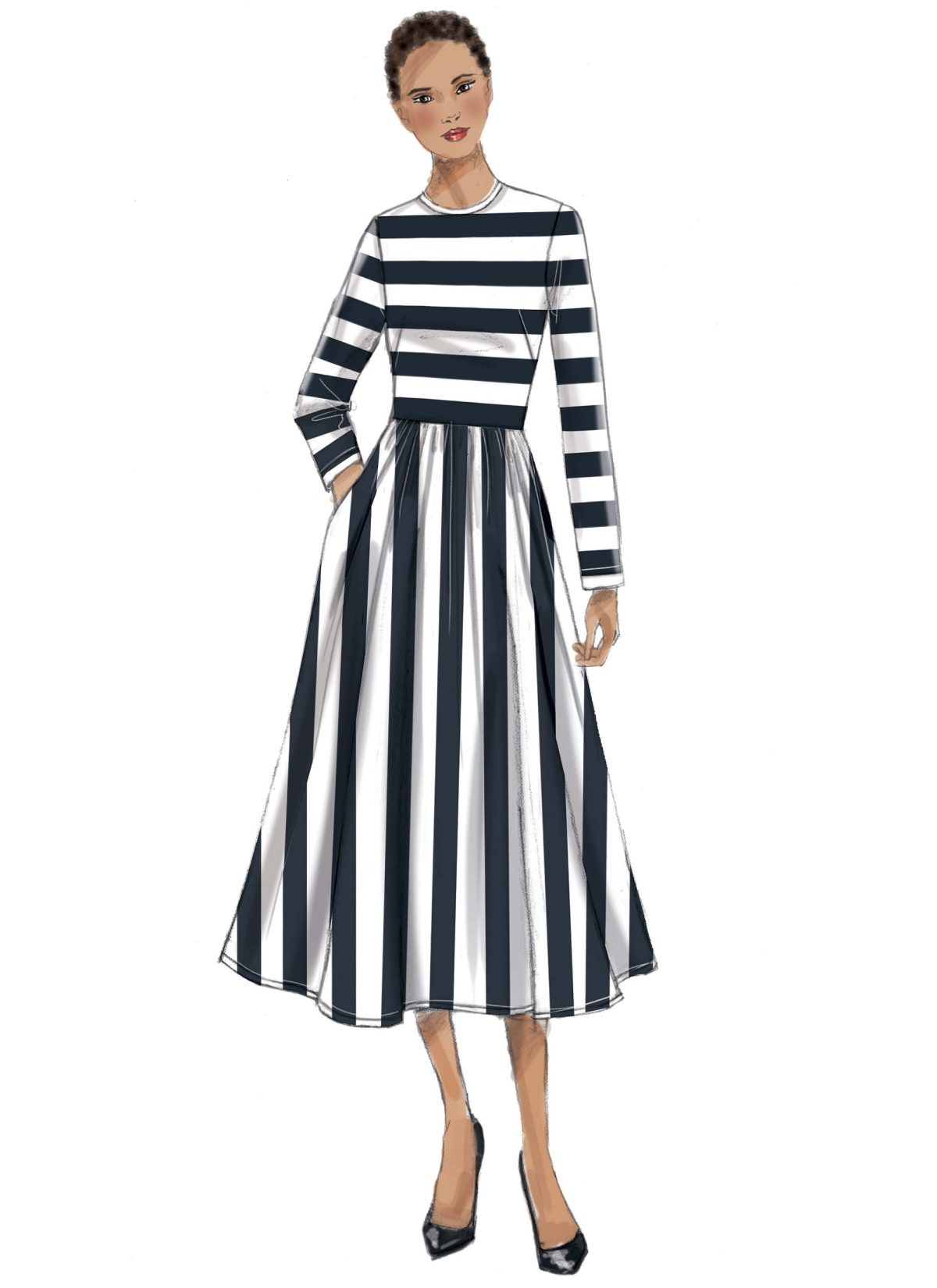 Our pattern sizing varies slightly between brands. Also it’s worth saying that pattern sizes aren’t the same as ready-to-wear sizing! Take your body measurements before choosing which size to make up using the bust, hip and waist measurements printed on each pattern envelope and the finished garment measurements. For more information on this topic visit our size and fit guides section of the website. Here we show you how to measure yourself and pick the right pattern size.